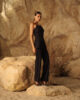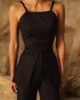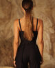 Костюмний комплект топ – баска і штани . Матеріал : вовна 100%, підклад: купра . Колір : темно – синий у тонку блакитну смужку .